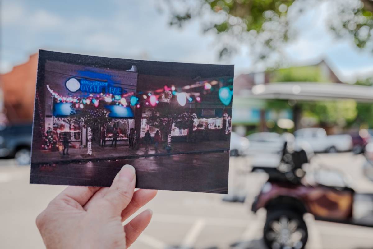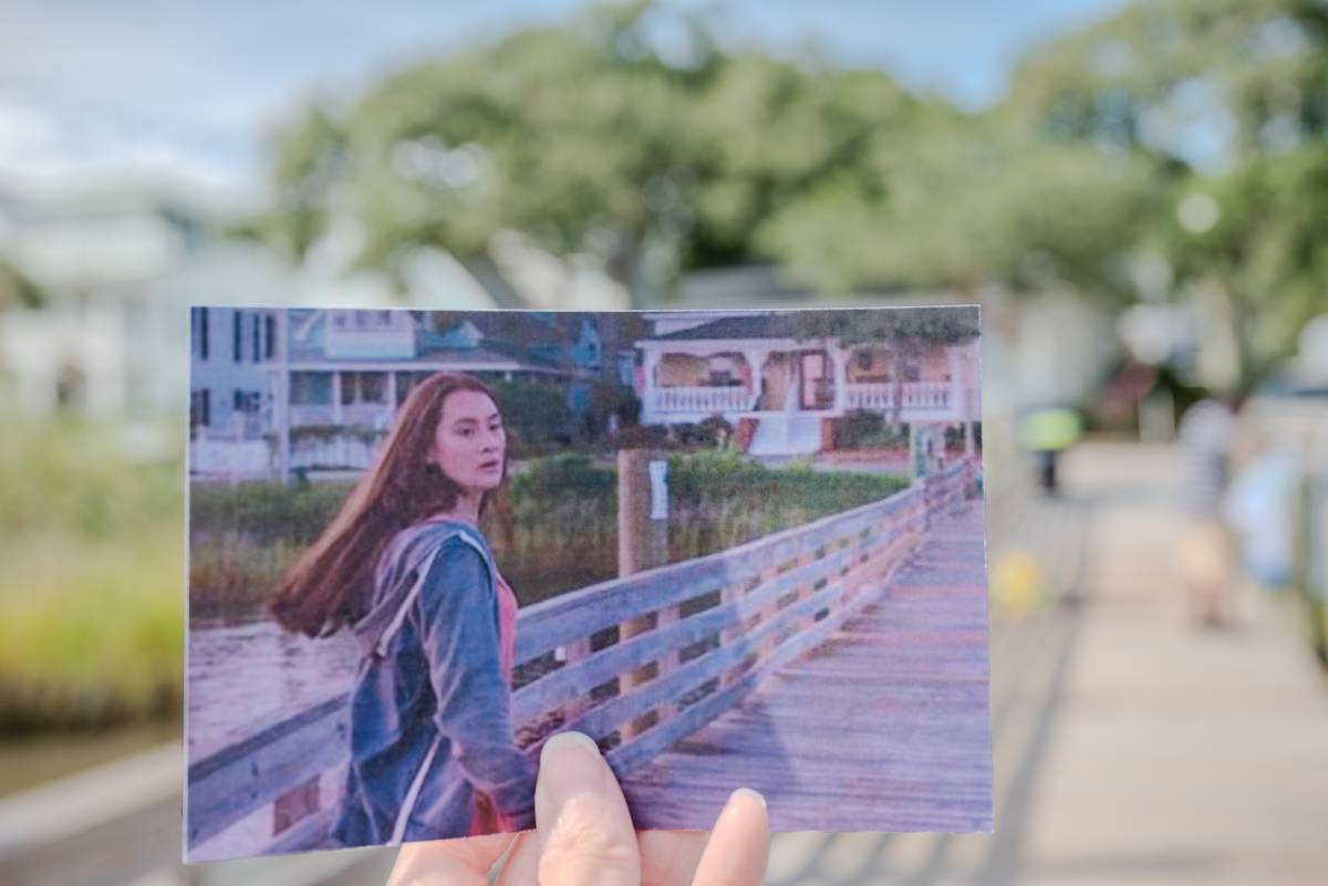 The State Port Pilot, a local newspaper serving the greater Southport-Oak Island area since 1928, served as the exterior of Cousins Beach’s Whale of a Tale Bookshop before future filming for the bookstore moved to downtown Wilmington. In this scene, Susannah and Laurel navigate through parked cars on East Moore Street before crossing the sidewalk and entering the brick building. The scene leads into that first awkward meeting between Laurel Park and Cleveland Castillo, when Laurel loudly dubs him a masculine “off-brand Jonathan Franzen” intellectual with horn-rimmed glasses.