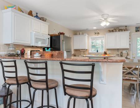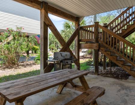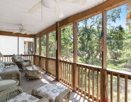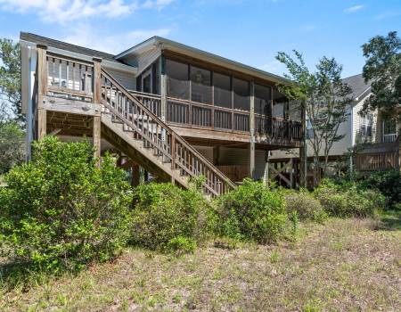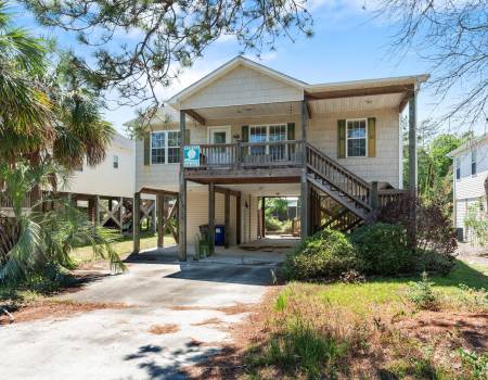 3 bedroom, 2 bath Furnished home on pilings. Screened in back porch. Storage. Parking space underneath. All major appliances available including washer and dryer. Master bedroom equipped with a queen size bed, spacious walk in closet, double bathroom vanity and shower/tub combo. One guest room has two twin beds, and the other guest bedroom has a full size bed. Covered front porch. No smoking. Pet negotiable.